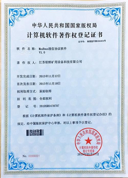 Modbus通信協(xié)議軟件證書